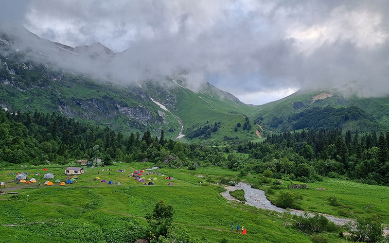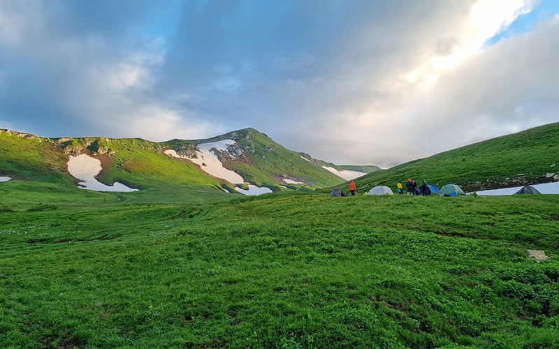3 деньЗавтрак. Подготовка к выходу. Переход река Армянка — перевал Гузерипль. Обед – перекус. Перевал Гузерипль — перевал Армянский — тур. приют Фишт (10км). Ужин, отдых. На тур. приюте есть летний душ (бесплатно), баня (за отельную плату), волейбольная площадка.