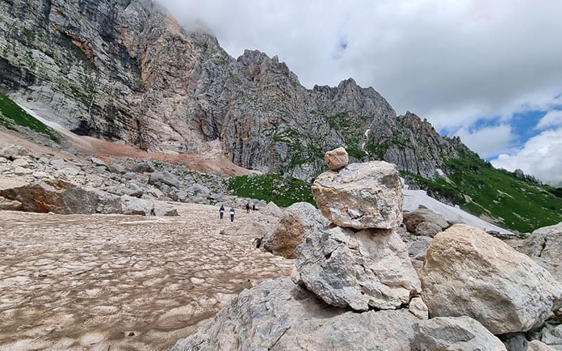 2 деньПодъём в 5-00. Завтрак. Берём с собой только самое необходимое и выдвигаемся на штурм горы Оштен (2804 метра). Восхождение будет очень живописным — мы пройдём зону альпийских лугов и поднимемся на самую вершину горы. Местами путь будет пролегать около скал и обрывов, по курумнику и снежникам. Восхищаемся открывшейся панорамой. Обед - перекус. Возвращаемся в наш лагерь. Ужин, отдых.