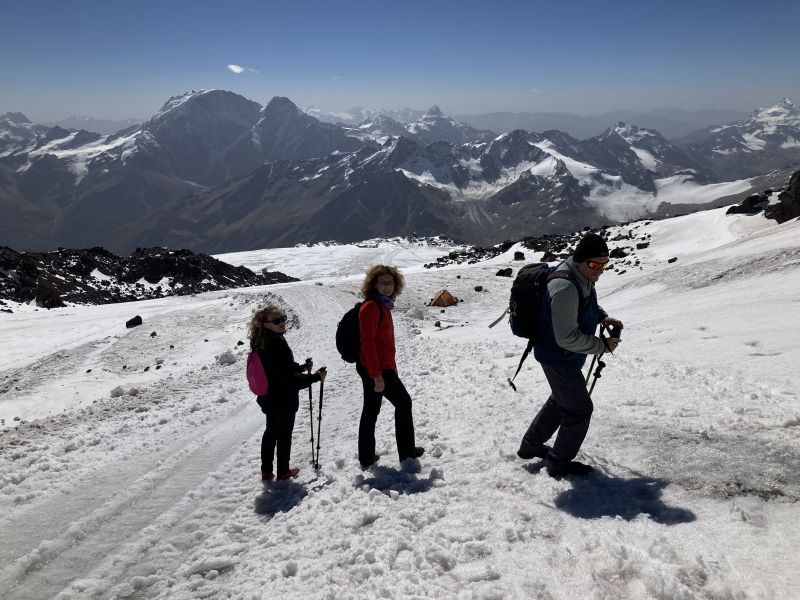 Сегодня мы едем на Эльбрус! Три очереди подъёмника и мы на станции Гора-баши на высоте 3850 метров! Мы сходим к лагерю альпинистов, по маршруту восхождения попытаемся подняться на высоту 4200 метров (до первого льда). Сделать ПОТРЯСАЮЩИЕ ФОТО! Что нас ждёт? Нереальные виды! Тёмно-синее небо! Облака и горные пики Главного Кавказского хребта под нами! Спускаемся вниз. -
