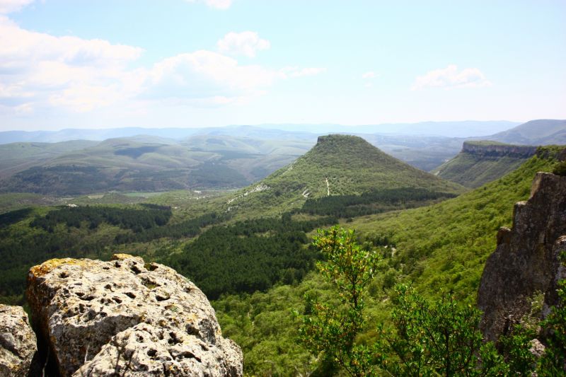 Завтрак. По лесной тропе поднимаемся в гору. Смотрим древнее караимское кладбище. Спускаемся вниз по крутой тропе. Лезем на гору Тепе-Кермен. Тепе-Кермен (Крепость на вершине) — древний и ещё не исследованный археологами пещерный город, здесь есть что посмотреть, и есть что поискать. От видов с вершины горы захватывает дух! Обедаем чаем с бутербродами. Возвращаемся в кемпинг. Ночёвка в палатках. Ужин, костёр, отдых. -