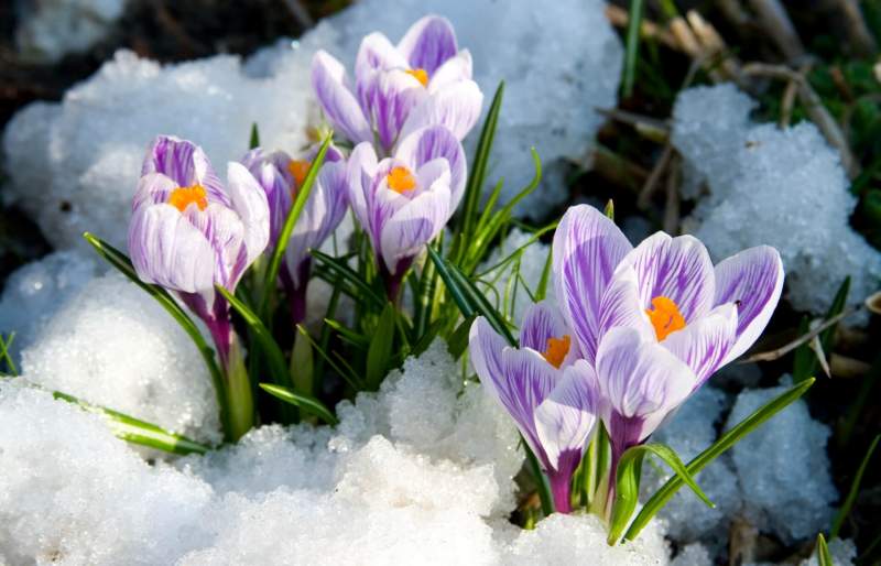 В горах снег сверкает на ярком солнце, из-под сугробов пробиваются нежно фиолетовые крокусы. В долине порхают бабочки, гудят пчелы, цветут яблони!