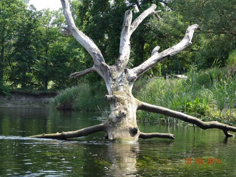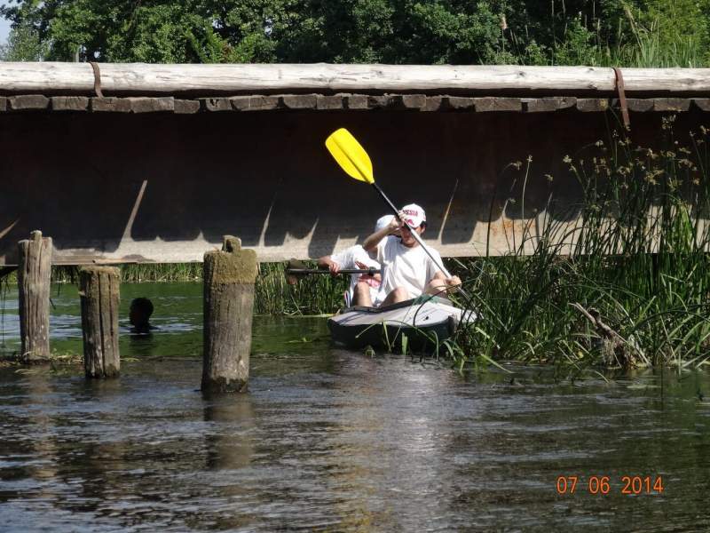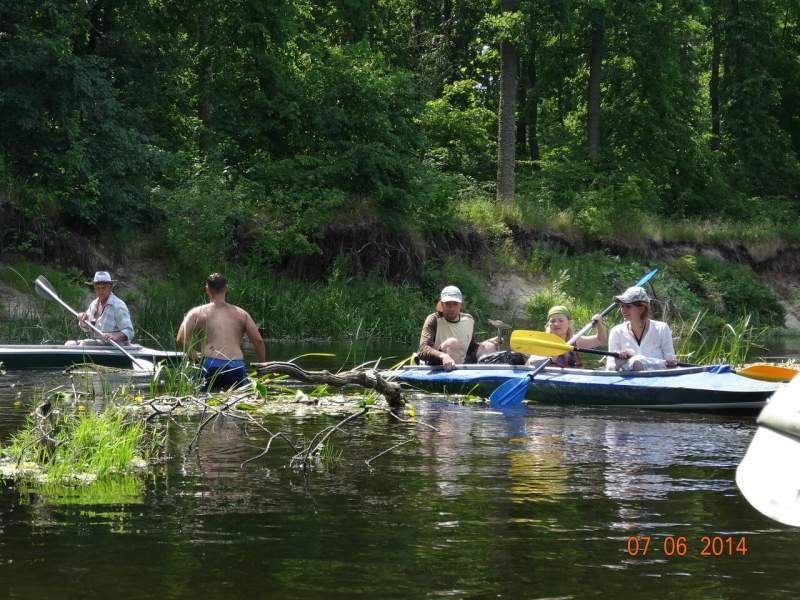 Читать полностьюПоход по Битюгу 29 июля-4 августа: День шестой. Утром оказалось, что наш бравый юнга Олег прихворнул, но мамина забота и лекарство быстро поставили его на ноги, к обеду он уже желал купаться. Вообще, дети молодцы, я даже не ожидала. Никаких капризов, все время видели что-то интересное и показывали нам. У меня байдарка немного подтекала, никак не могли обнаружить - где. Именно дети в последний день разобрались с этим и доложили уже вслед отъезжающему с байдарками Евгению. Но это было после, а пока нас ждал шестой день - "полудневка". В шестой день мы проплыли мимо удивительно красивого лесничества, я остановилась, побродила там. Плывешь-плывешь и вдруг посреди дикой природы такая красота, там рос чабрец (ура!). Потом был обнос моста и общая фотография на память. Вообще, шестой день выдался медитативно-лениво-расслабленным. Мы доплыли до Висленского лесничества и встали перед мостом на песчаном пляжике где-то в районе обеда. Расслабленно валялись на пляжике и в палатках, купались, пообедали и снова поспали. Погуляли немного по окрестностям, опять поспали. В общем, слушали тишину и отдыхали. Ребятишки послушали рассказы по радио (честно говоря, не знаю, как остальные взрослые, а я тоже с удовольствием прослушала занимательную историю про Мишкину кашу. Юля рассказала про собственное детство в деревне, очень интересно, а потом, в ожидании ужина, Евгений поведал нам, как профессиональный историк, кто населял эти места, как они жили, рассказал про раскопки. В общем, душевно посидели в эту заключительную ночь. Седьмой день Наутро пора было расставаться с Битюгом. С нами попрощались две маленькие черепашки. Кое-кто искупался, мы в последний раз позавтракали (Жень, открывай свой ресторан, серьезно!) и поплыли. Проплыли мы двадцать километров, вообще без напряга - адаптировались. На последних трех погода испортилась, пошел дождик, но нам уже было не страшно. Немного понервничали, пока все собрались, но вот погрузились в машины (Женя с байдарками, мы в другую). Расставание, сухпаек (мои дома его так умяли с картошкой, как какой-то деликатес) и такое светлое чувство, словно с тобой произошло что-то очень-очень хорошее. Да так оно и есть. Ты стал немного другим человеком, счастливее что ли. Спасибо еще раз всем и, надеюсь, до новых встреч!